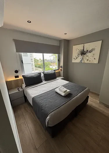 Contamos con 25 habitaciones en total, con opciones de habitaciones tanto dobles como triples, con configuraciones flexibles que combinan practicidad y confort. Todas las habitaciones están equipadas con somier, aire acondicionado frío/calor individual, baño privado con ducha, secador de pelo, amenities, Smart TV de 40” y caja de seguridad. El acceso se realiza mediante tarjeta electrónica o aplicación móvil, garantizando comodidad y seguridad durante toda la estadía.